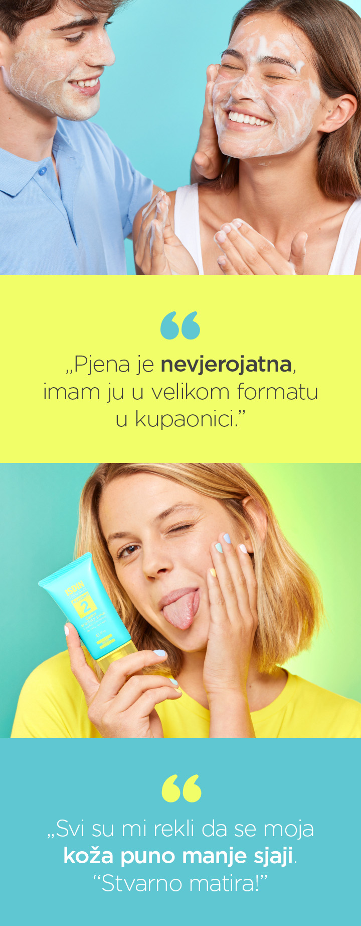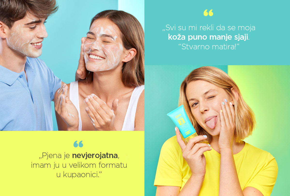 Pjena koja uklanja višak masnoće i nježno čisti kožu.