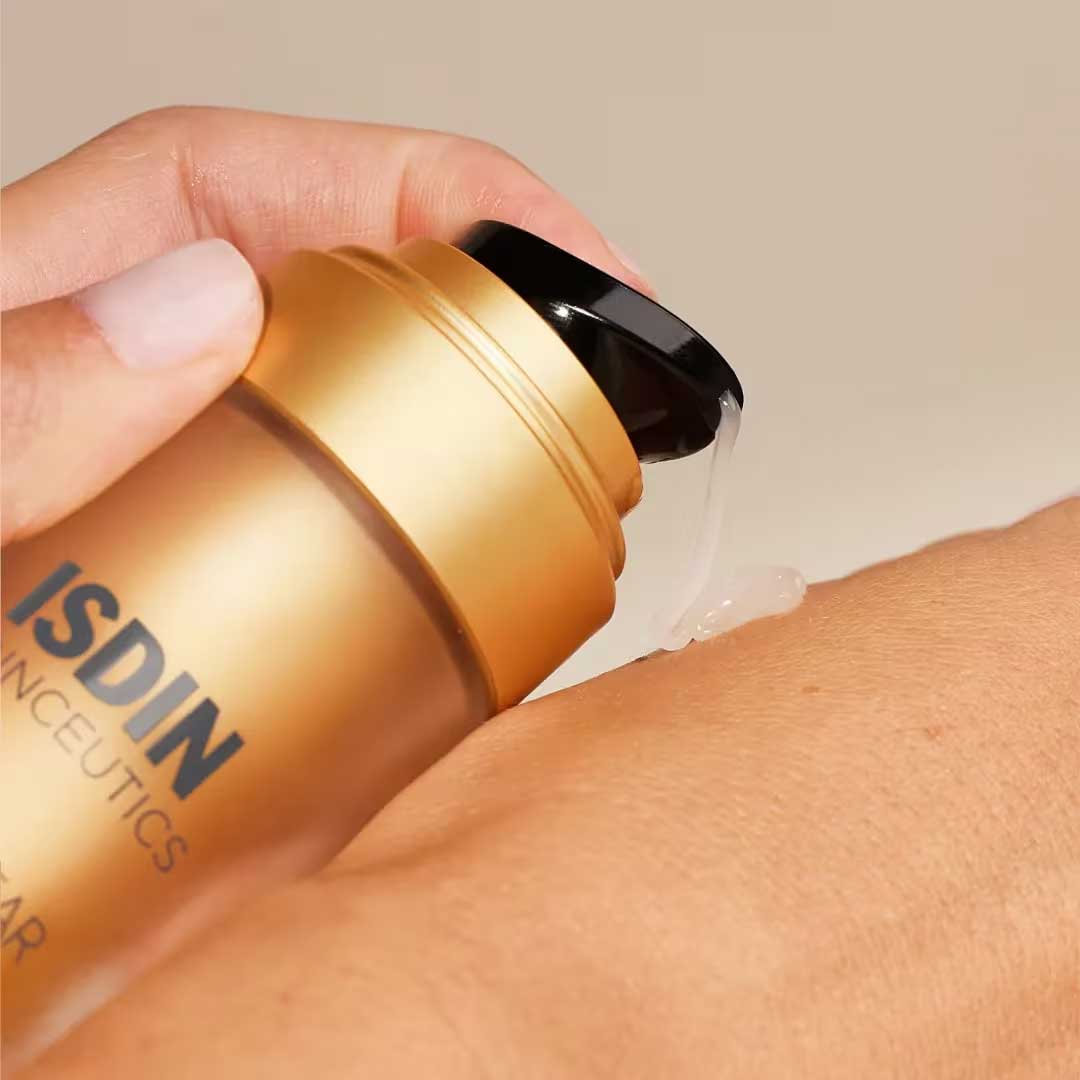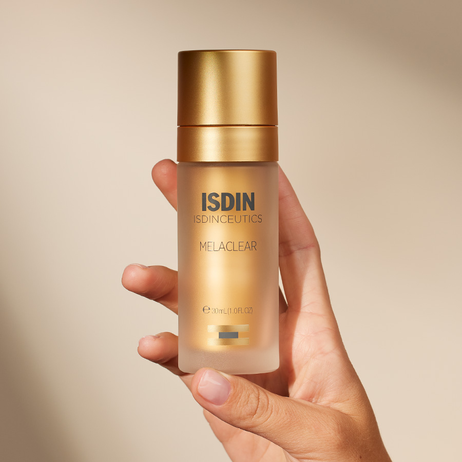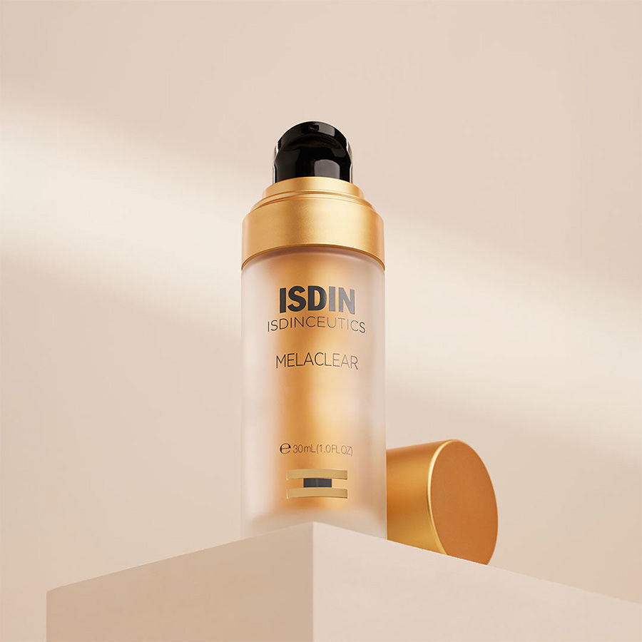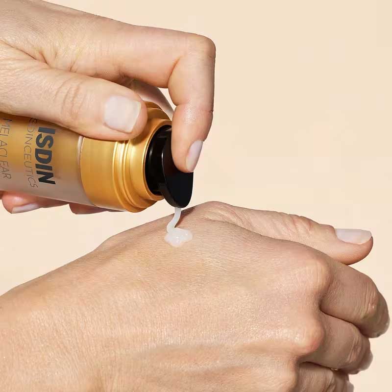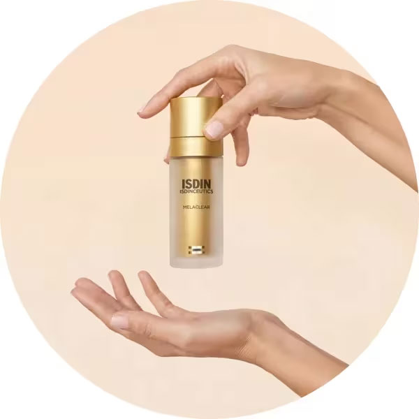 ¹ Predklinička studija provedena na rekonstruiranoj epidermi s melanocitima, kojom je procijenjeno smanjenje količine melanina nakon 9 dana. ISDIN, interni podaci, 2023. ² Test upotrebe za procjenu učinkovitosti i sigurnosti putem dermatološke evaluacije i subjektivnih upitnika, proveden na 30 žena s blagom do umjerenom hiperpigmentacijom tijekom 3 mjeseca uz nanošenje dva puta dnevno. ISDIN, interni podaci, 2023. ³ Mrlje uzrokovane suncem, starenjem, trudnoćom i nepravilnostima na koži.