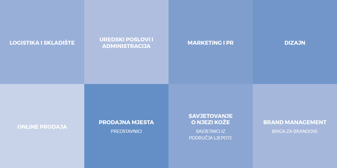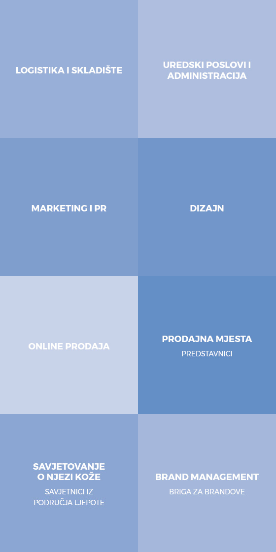 Kao marketinška tvrtka na području Adriatic regije, odgovorno za distribuciju različitih brandova za zdravlje i ljepotu, potrebni su nam ljudi sa znanjima iz sljedećih područja: